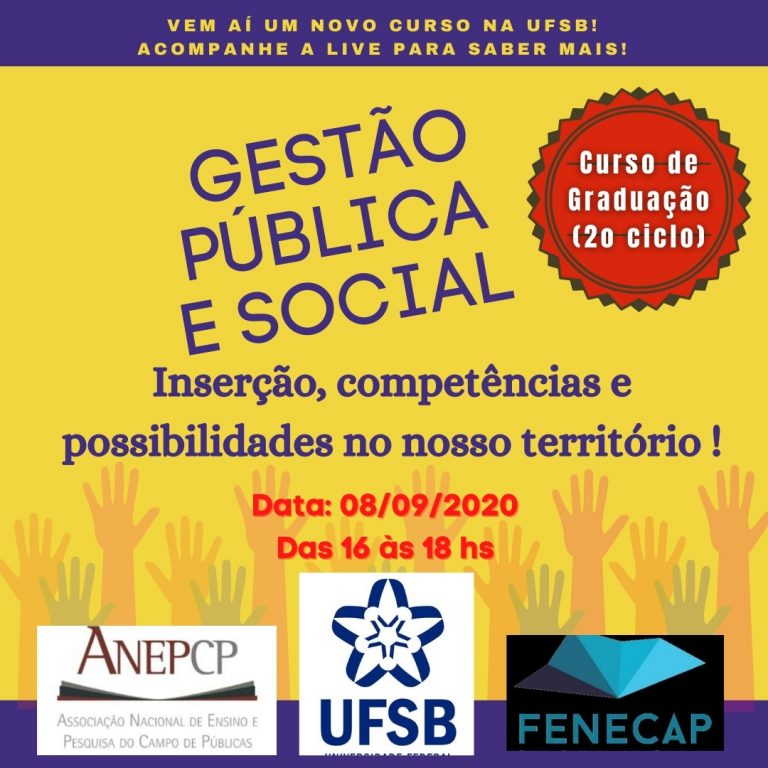 8 de setembro de 2020 por LIEGS UFCA Leia mais...Vem aí o novo curso de graduação (2º ciclo) em Gestão Pública e Social da UFSB.