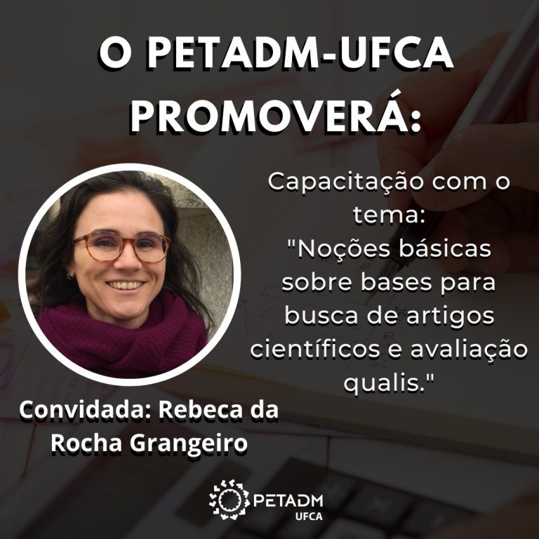 O Programa de Educação Tutorial do curso de Administração (PETADM/UFCA) vai promover uma capacitação com o tema “Noções básicas sobre bases para busca de artigos científicos e avaliação...